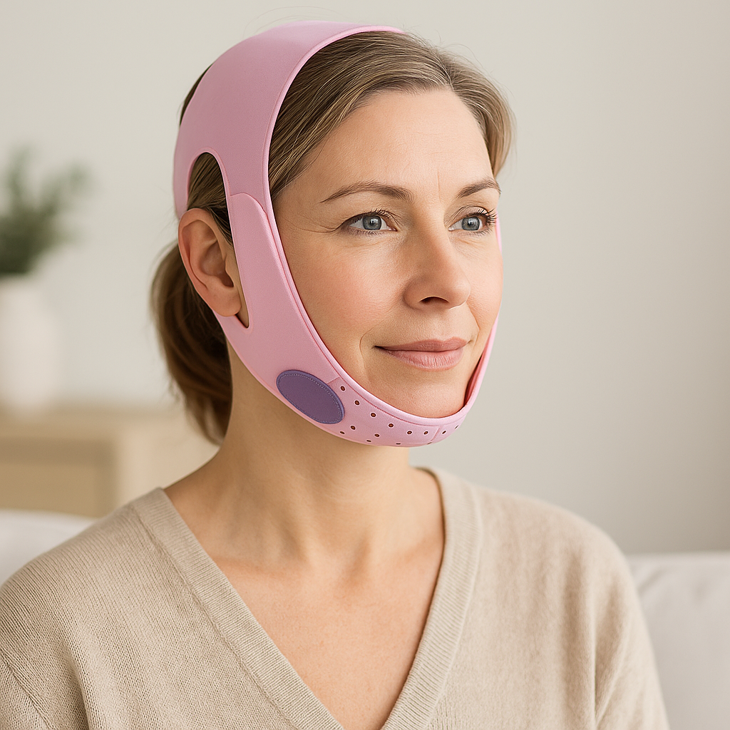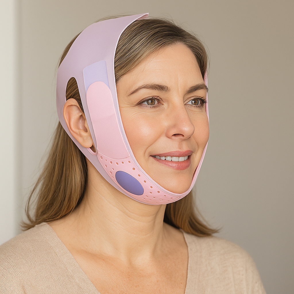 The Sculptique™ Face Shaper gently lifts, tightens, and contours your jawline — helping reduce sagging skin, jowls, and double chins for a naturally defined look over time.